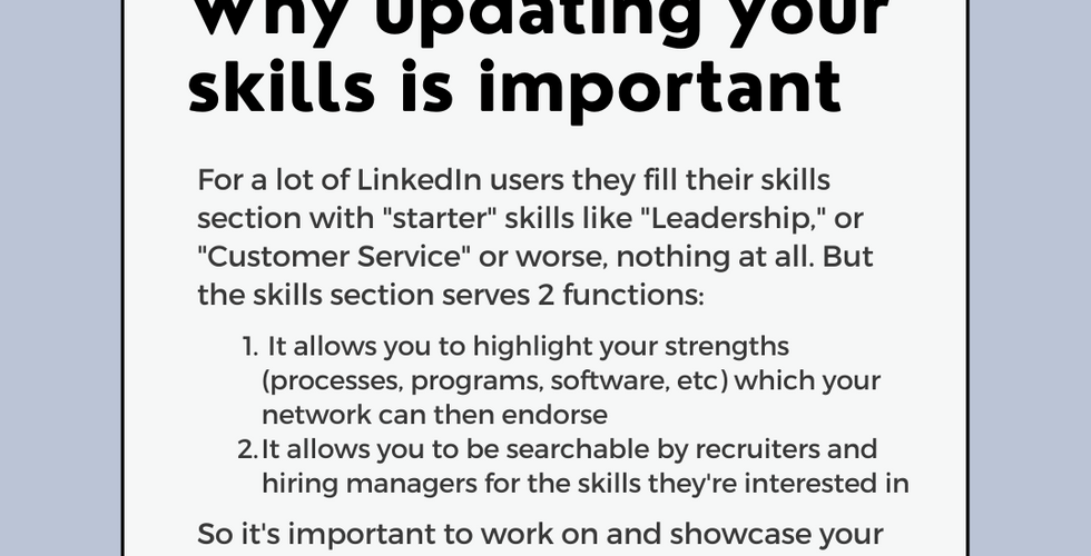 For a lot of LinkedIn users they fill their skills section with "starter" skills like "Leadership," or "Customer Service" or worse, nothing at all. But the skills section serves 2 functions: